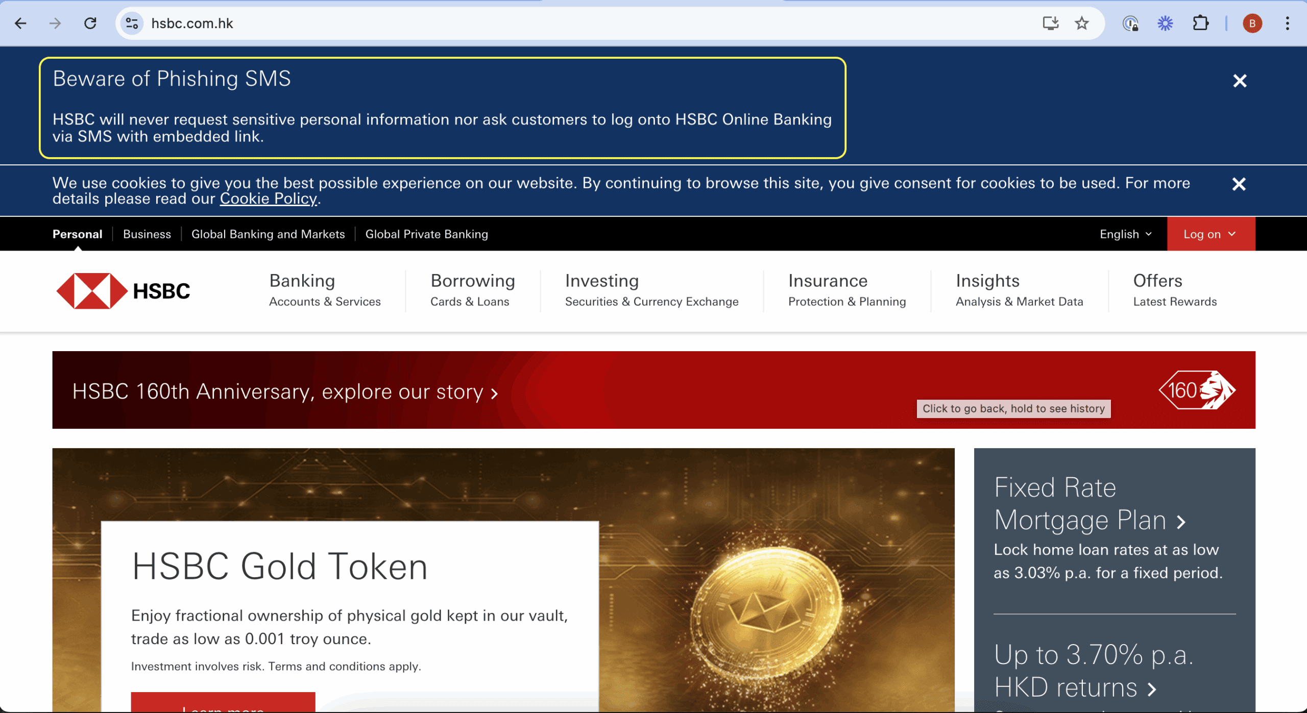 “Be aware of Phishing SMS… HSBC will never request sensitive personal information.”